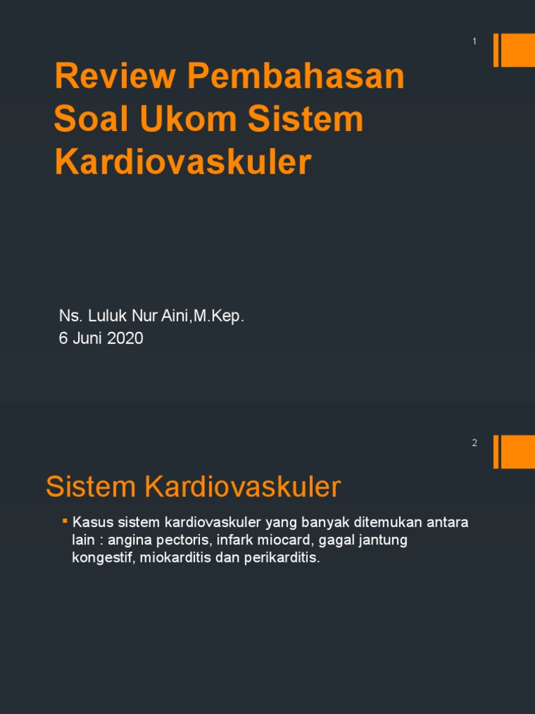 Pertanyaan Sistem Kardiovaskuler / Jual Buku Asuhan Keperawatan Pada Pasien Gangguan Sistem Kardiovaskuler Kota Yogyakarta Belik Ilmu2 Tokopedia : Ada riwayat hipertensi lama yang tak terkontrol.. Keluhan ini dirasakan sejak 3 jam yang lalu. Beberapa contoh kasus kardiovaskuler pertanyaan dan jawaban kasus : Sistem kardiovaskuler merupakan organ sirkulsi darah yang terdiri dari jantung, komponen darah dan pembuluh darah yang berfungsi memberikan dan mengalirkan suplai oksigen dan nutrisi keseluruh jaringan tubuh yang di perlukan dalam proses metabolisme tubuh. Sistem vaskuler darah ini berfungsi untuk menyebarkan oksigen, bahan nutrisi, antibody dan hormon ke seluruh jaringan tubuh serta mengumpulkan karbon dioksida dan produk limbah metabolik lain untuk dikeluarkan melalui organ ekskretoris. Contoh soal ujian final kardiovaskular.