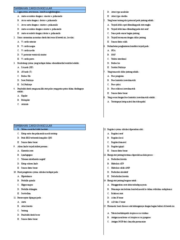 Contoh soal ujian final kardiovaskular. Istilah kardiak berarti berhubungan dengan jantung, dari kata yunani cardia untuk jantung. Pada pemeriksaan laboratorium yang dianjurkan adalah : Sistem kardiovaskuler dalam tubuh berfungsi untuk mengalirkan darah ke seluruh bagian tubuh. Hello sehat | pusat informasi kesehatan terverifikasi medis