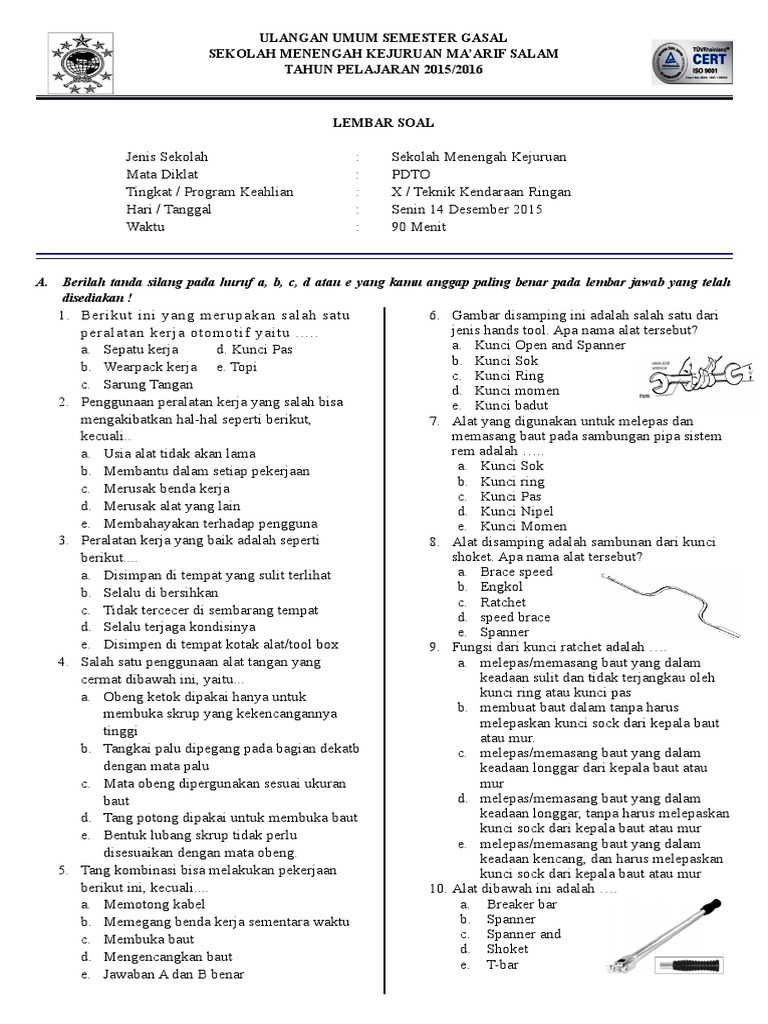 Soal Pdto X Cetak Docx Lembaran Soal Evaluasi Belajar Bersama Mata Pelajaran Pekerjaan Dasar Teknik Otomotif Semester I Ganjil Program Keahlian Teknik Course Hero from www.coursehero.com Check spelling or type a new query. Maybe you would like to learn more about one of these? We did not find results for: