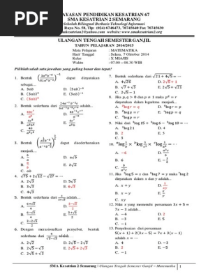 Maybe you would like to learn more about one of these? Soal uts matematika wajib kelas 12 semester 1. Check spelling or type a new query. We did not find results for: