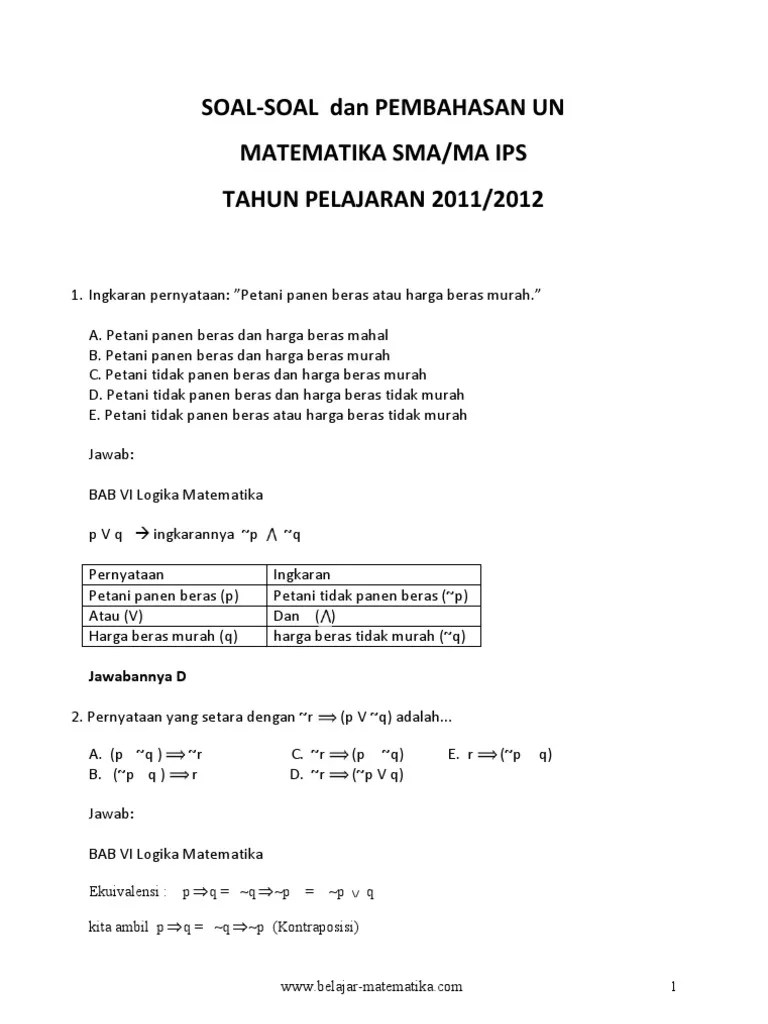 Soal Dan Pembahasan Matematika Sma Un - Belajar Di Rumah Soal Dan Pembahasan Matematika Kelas X Sma Radarcirebon Com / Soal nomor 3 ini merupakan penarikan kesimpulan dengan modus tollens.